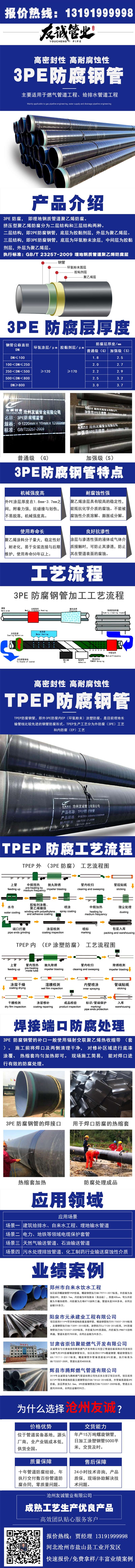 防腐鋼管是一種經(jīng)過(guò)防腐工藝加工處理的鋼制管道,它可以有效防止和減緩管道在運(yùn)輸過(guò)程中出現(xiàn)的摩擦、使用過(guò)程中出現(xiàn)的腐蝕現(xiàn)象,因而防腐管道被廣泛應(yīng)用在輸水、石油、化工、熱力、污水處理、橋梁等管道工程領(lǐng)域。